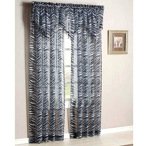 Black and white print sheer panel and valance adds the perfect exotic touch to any room. This great Kenya Zebra Window Sheer Panel creates a wild backdrop and evokes the imagery of zebra stripes. Beaded ascot valance is attractive and drapes beautifully on the panel. Great to make you imagine an African Safari!