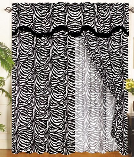 Zebra Animal Curtain Set w/ Valance/Sheer/Tassels description