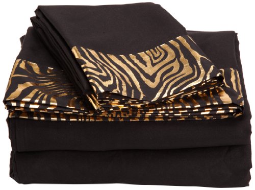 Divatex 75 GSM Metallic Printed Bling Microfiber Zebra Queen Sheet Set, Black/Gold features